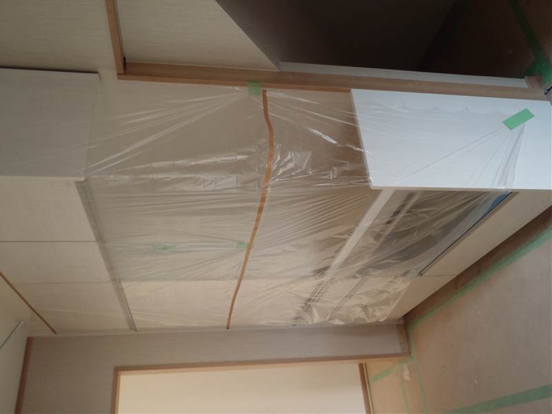 玄関から続く部屋と、和室は下塗りが終わりました。
