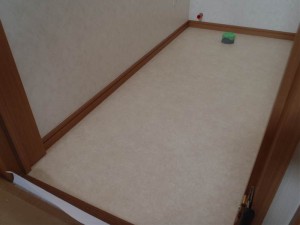 広間や、倉庫はビニルクロス貼りなのでパテ下地処理をしています。